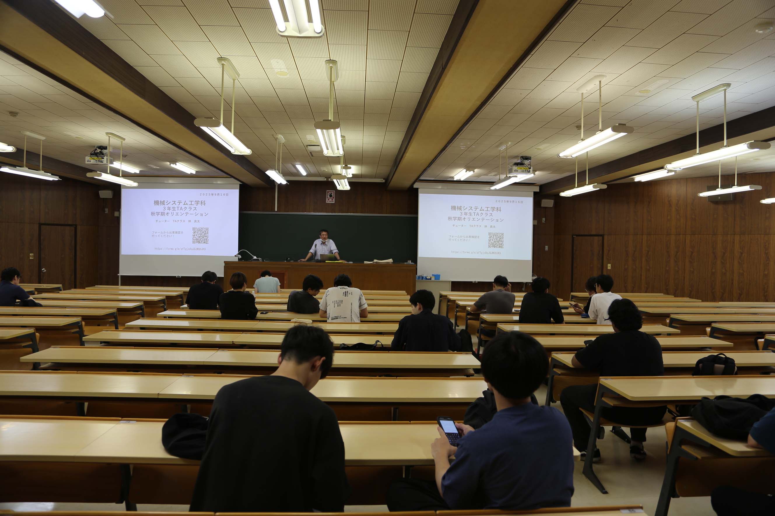 機械システム工学科では,毎年,学科独自の就職ガイダンスを年に3回程度実施しています.10月14日(火)には,本年度第3回目となるガイダンスを,3年生および大学院1年生を対象に開催しました.今回は,学外の有識者をお招きし,秋冬期間の就活準備について、および、エントリーシートの書き方や面接時の注意事項などをお話いただきました.参加した学生は今後の就職活動において有益な情報が得られたのではないでしょうか.今後も学科として,さまざまな形で独自の就職支援を継続してまいります.